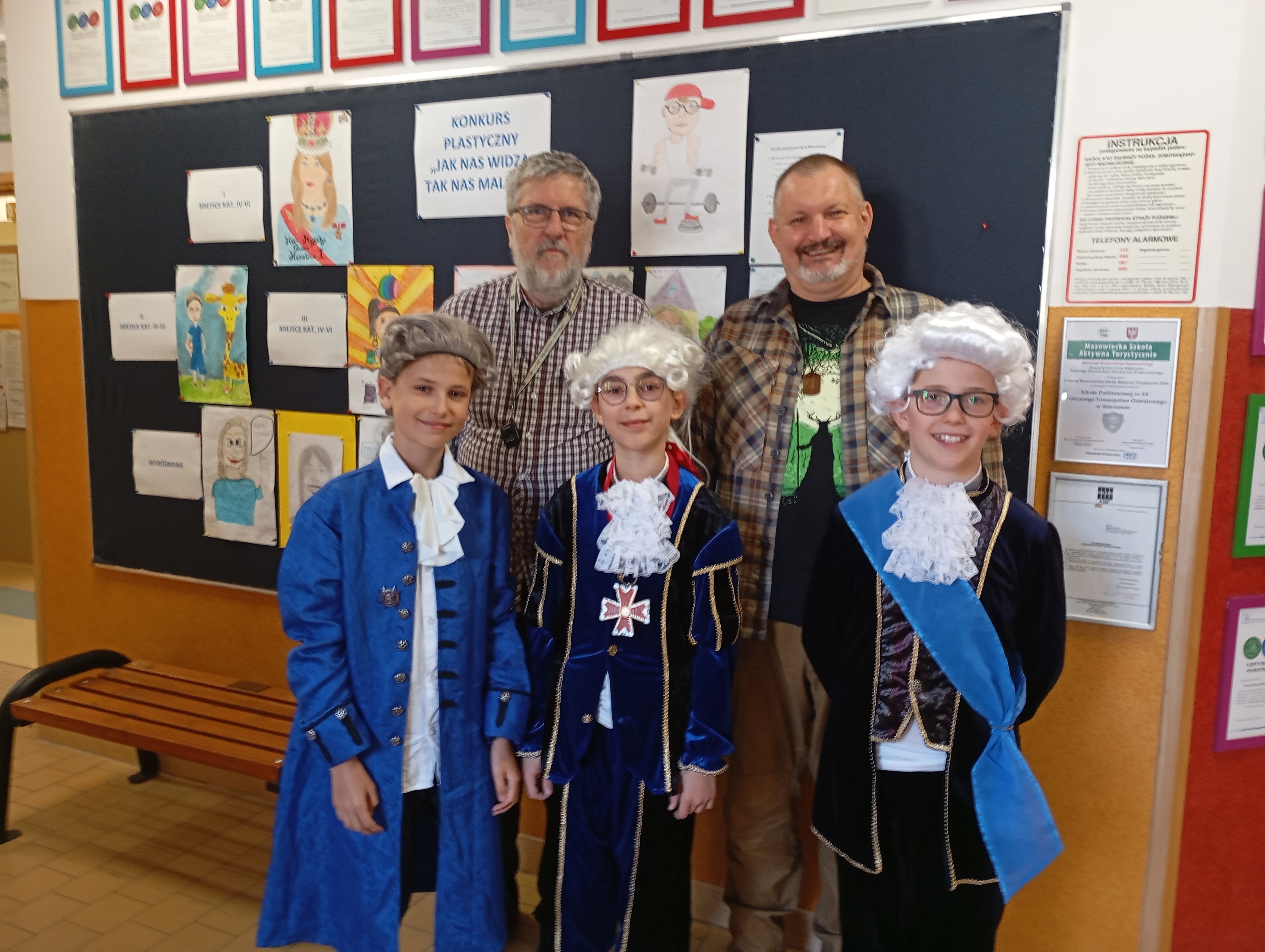 Klamra powiązanej z harcerstwem historii mojego belferstwa zamknęła się w przeddzień czterdziestej rocznicy, wraz z wizytą w STO na Bemowie druha Radosława Potraca, szerzej znanego jako Nauczyciel Roku 2023, którego zaprosiłem, żeby pokazać komuś znającemu się na rzeczy w jaki sposób szkoła działa w oparciu o harcerski model wychowawczy. Na pamiątkę tej wizyty powstało zdjęcie, które tutaj reprodukuję. Towarzyszą nam młodzi ludzie, którzy kilka minut później, podczas szkolnej uroczystości, będą podpisywali Konstytucję 3. Maja, wznosząc razem z cały chórem innych entuzjastyczne okrzyki na cześć króla i wszystkich stanów.